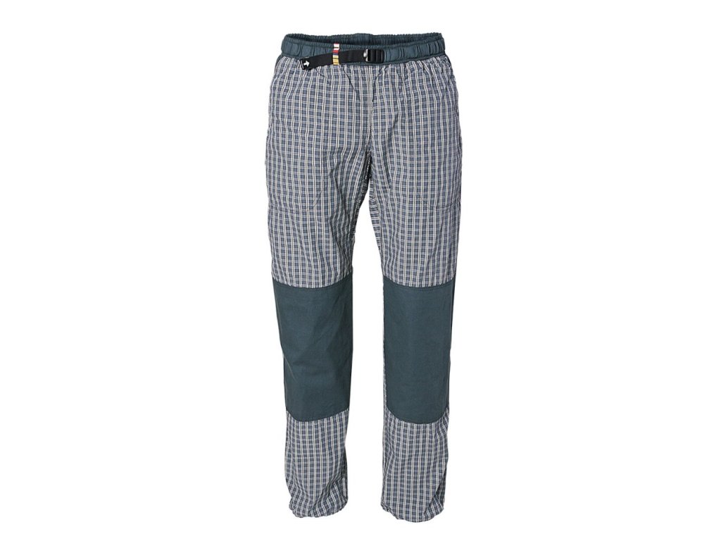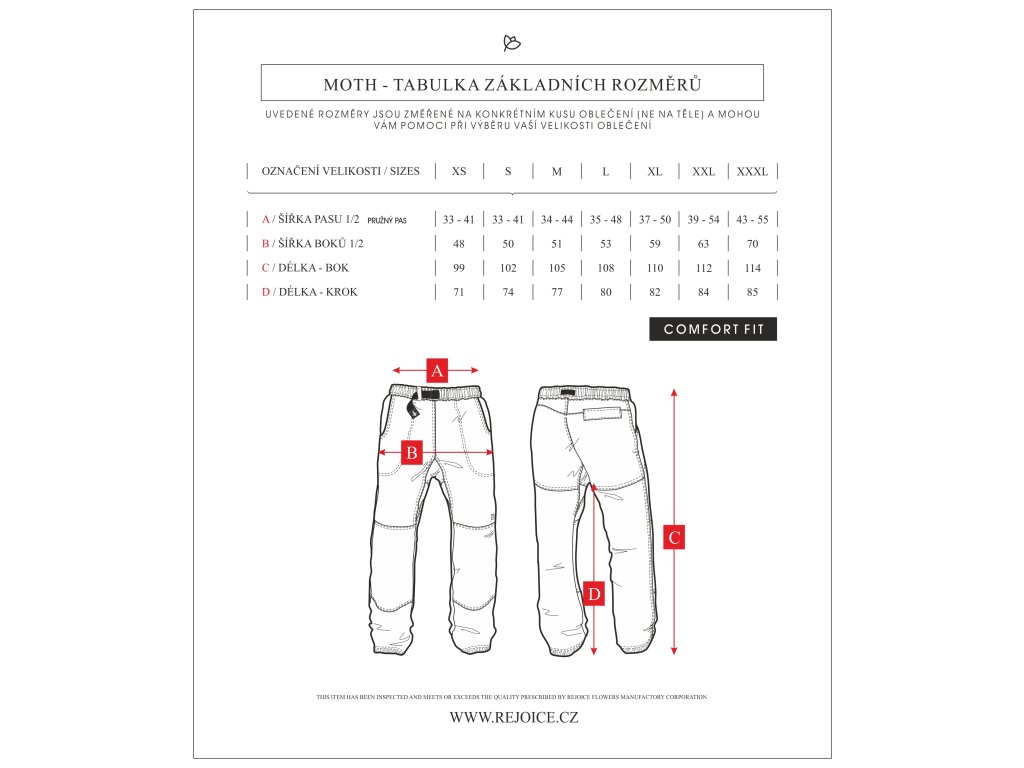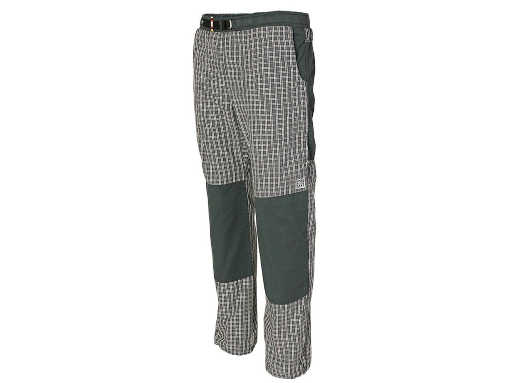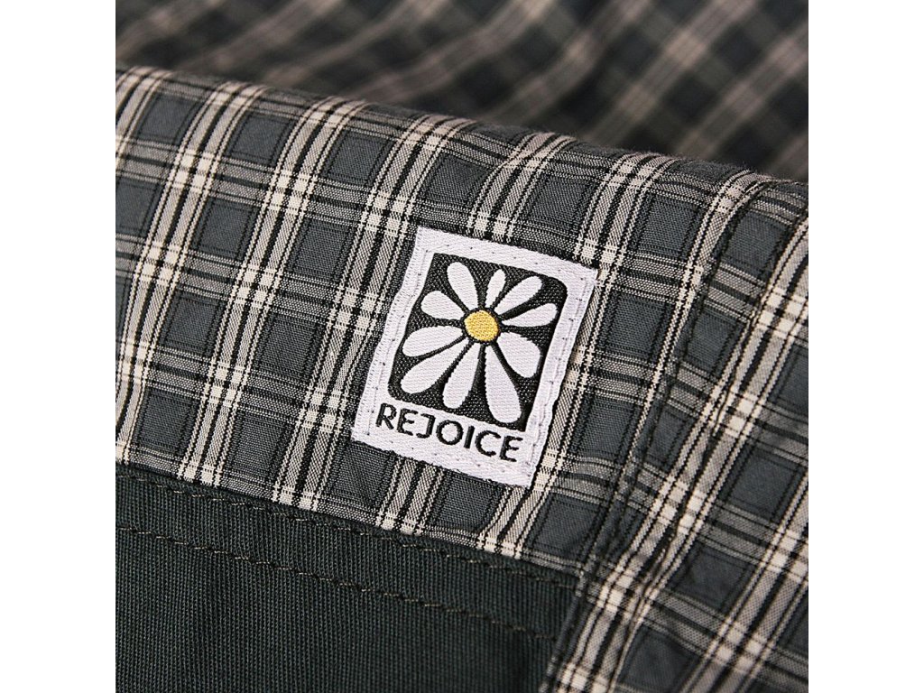 Klasické lehké plátěné kalhoty - Rejoicky. Tradičí zástupce výrobků Rejoice flowers manufactory, které se u nás na Vysočině bez větších změn vyrábí již 15 let. Jednoduchý pohodlný střih s ergonomicky tvarovaným klínem. Na kolenou a sedací části zdvojená plátěná záplata. Na předním díle dvě hluboké kapsy a na zadním díle jedna kapsa s patkou na suchý zip. Nohavice ukončeny tunýlkem s pružnou kulatou gumou se samosvorkou (pouze u dlouhých kalhot). V pase pro větší pohodlí plochá guma a pásek s plastovou přezkou Nexus. Na levém koleni vytkávaná etiketa – logo. Většina švů zdvojená. Na přední straně pasu originální vytkávané poutko, kterým lze prostrčit přebývající část pásku.