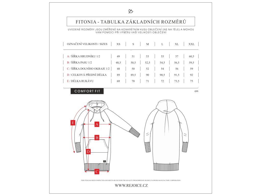 FITTONIA je pěkné dlouhá klokanka nebo pěkně teplé šaty zkrátka mikinové šaty. Jsou vyrobeny z hřejivého materiálu s počesanou rubovou stranou, která poskytuje maximální teplo a komfort. S délkou nad kolena a originálním střihem - přenesené boční švy do předního dílu, stylová klokanka a podšitá kapuce - dodávají šatům sportovně elegantní vzhled, dolní okraj těla a rukávů zakončený elastickým nápletem zajišťuje perfektní přizpůsobení a pohyb. Tento kousek je ideální volbou pro ženy, které chtějí spojit styl a praktičnost - skvělý kousek pro každodenní nošení a víkendové aktivity.