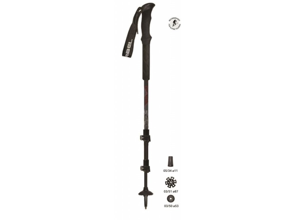 Skialpinistická trekingová teleskopická trojdílná hůl z uhlíkového a kevlarového kompozitu.